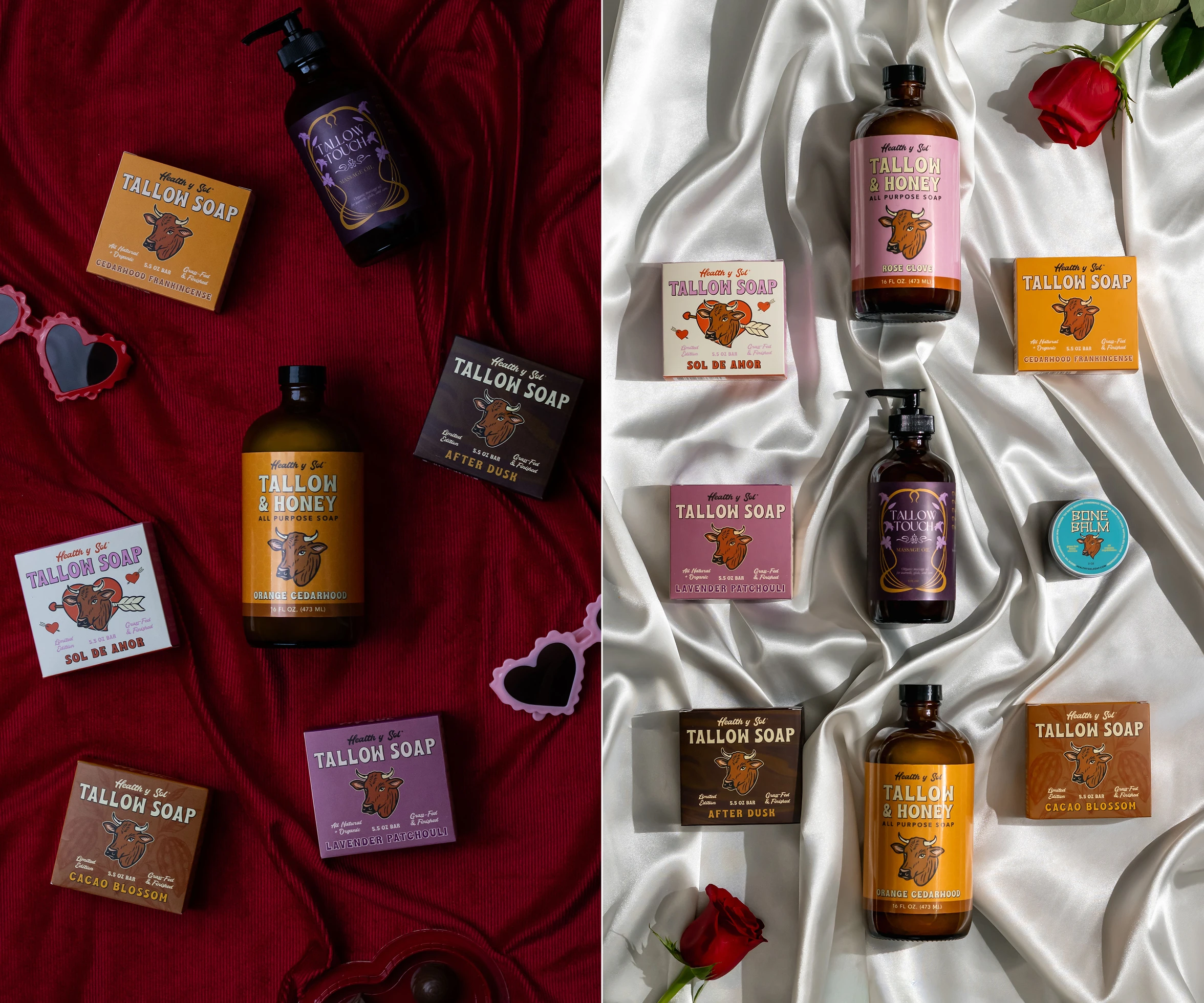 Each soap bar lasts 6-8 weeks with daily use. The liquid soaps last 3-4 months. The Tallow Touch massage oil lasts 2-3 months depending on use. These aren't products that run out in a week—they're investments that last.